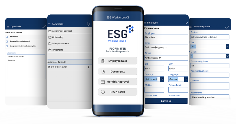 Die ESG WORKFORCE AG App bietet Ihnen eine umfassende Lösung für die Mitarbeitererfahrung in Ihrem Unternehmen!